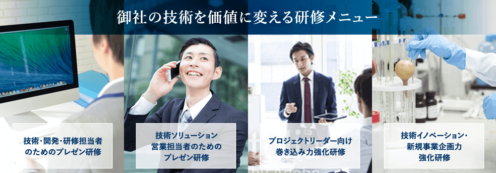 プレゼン力=伝える力を磨くことで、御社が持つ一流の技術が価値に変わり、その結果ビジネスとして成立し、社会に貢献することができる。