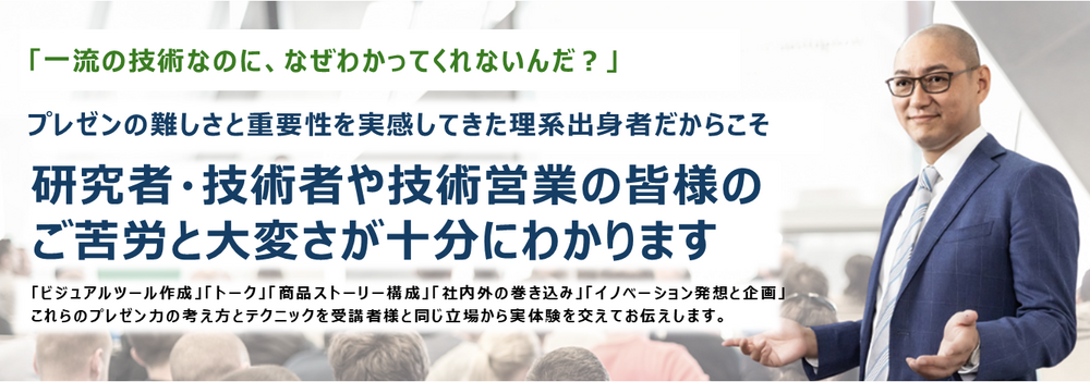 スマートプレゼンは、日本で唯一の技術プレゼンと技術マーケティングに特化した研修・コンサルティング企業です。
