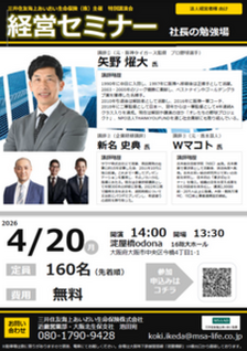 ※本セミナーは三井住友海上あいおい生命保険株式会社主催の法人経営者様向けセミナーです。